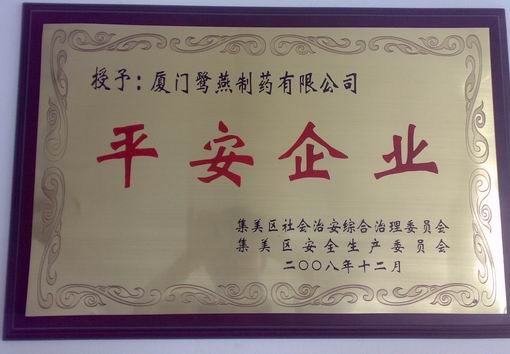 近日,集美區(qū)召開了“2008年度平安企業(yè)”表彰大會,廈門鷺燕制藥有限公司從幾百家參評企業(yè)中脫穎而出,獲此殊榮。