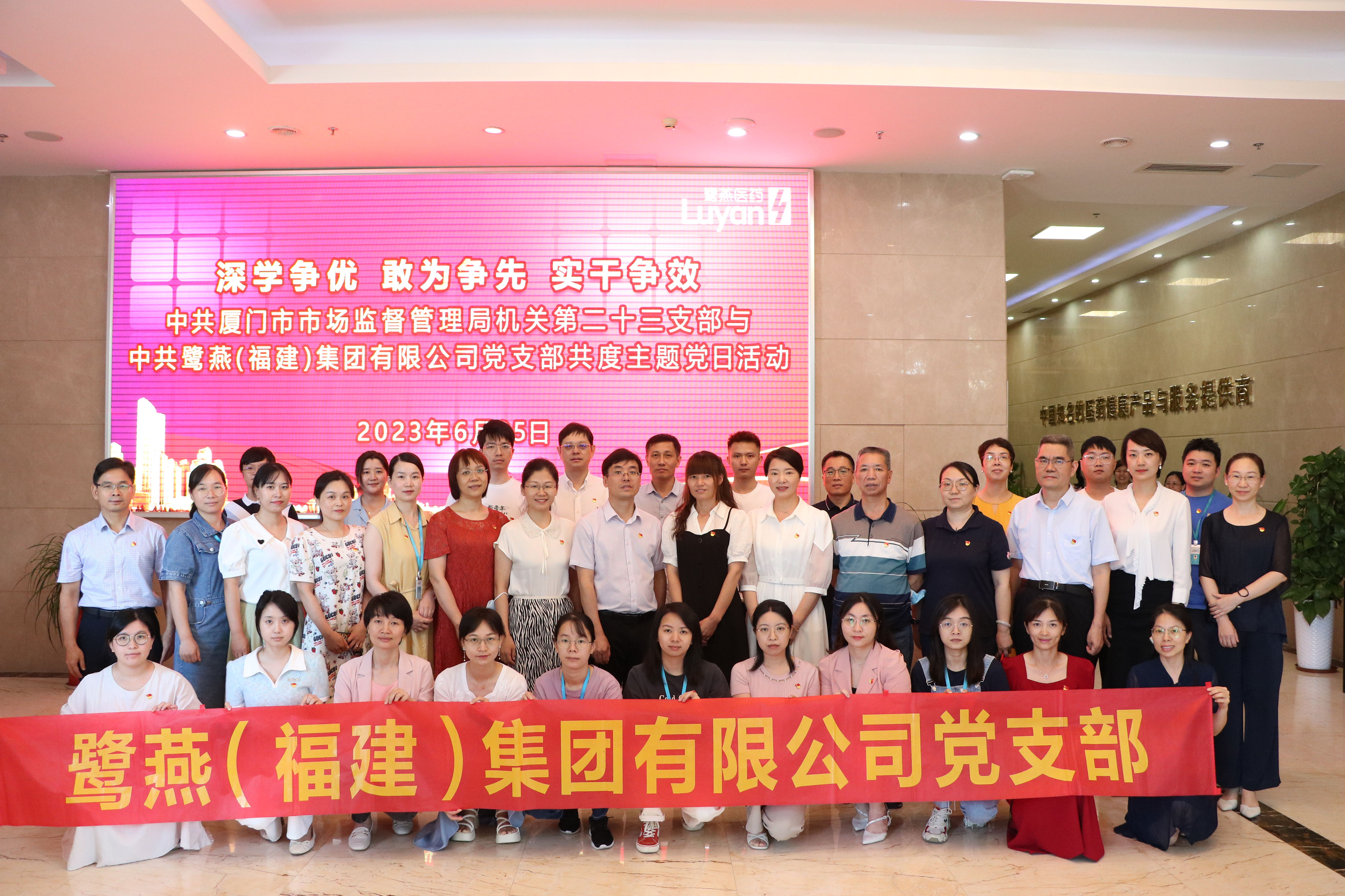 為深入學(xué)習(xí)貫徹黨的二十大精神,慶祝中國(guó)共產(chǎn)黨成立102周年,充分發(fā)揮黨建工作對(duì)企業(yè)經(jīng)營(yíng)管理的引領(lǐng)力,鷺燕(福建)集團(tuán)有限公司黨支部積極主動(dòng)對(duì)接監(jiān)管部門基層黨支部,與中共廈門市市場(chǎng)監(jiān)督管理局機(jī)關(guān)第二十三支部共同開展主題黨日活動(dòng)。2023 年6月25日, 活動(dòng)在鷺燕總部大廈如期舉行,中共廈門市市場(chǎng)監(jiān)督管理局機(jī)關(guān)第二十三支部全體黨員、鷺燕(福建)集團(tuán)有限公司黨支部黨員以及鷺燕集團(tuán)廈門區(qū)域部分成員公司總經(jīng)理、質(zhì)管干部參加了活動(dòng)。