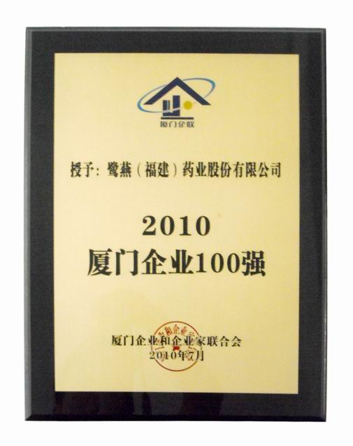 2010年6月28日,“2010廈門企業(yè)100強”榜單正式出爐,鷺燕(福建)集團依托穩(wěn)健經(jīng)營,實現(xiàn)經(jīng)營業(yè)績穩(wěn)步發(fā)展,位列榜單第37位,同比去年排名前進12位。自2006年參加廈門企業(yè)百強評選以來,鷺燕集團已連續(xù)5年位列百強企業(yè)榜單。