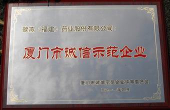 “2008 —2009年度廈門誠信示范企業(yè)”是廈門首個誠信企業(yè)評選活動。本活動由廈門市誠信促進(jìn)會、廈門市企業(yè)和企業(yè)家聯(lián)合會、各級政府機(jī)關(guān)等28個相關(guān)部門聯(lián)合開展,組委會本著“公開、公正、公平”的原則首次在全市范圍內(nèi)共同開展誠信示范企業(yè)的評選。經(jīng)過一系列激烈的競爭及組委會的嚴(yán)格評選,本企業(yè)最終獲得了 “2008—2009年度廈門市誠信示范企業(yè)”的榮譽稱號。