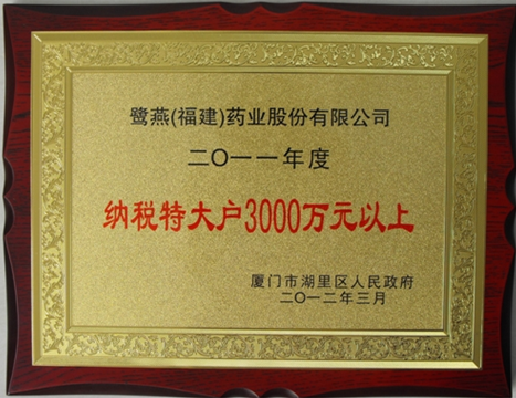 近日,廈門市湖里區(qū)隆重召開2011年度納稅先進(jìn)企業(yè)表彰大會(huì),鷺燕(福建)藥業(yè)股份有限公司以超3000萬的突出納稅貢獻(xiàn)榮獲“2011年度廈門湖里區(qū)納稅特大戶”稱號(hào)。
