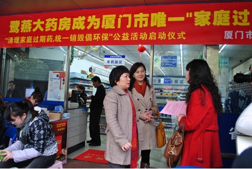 2012年3月15日上午,由廈門市食品藥品監(jiān)督管理局和廈門鷺燕大藥房有限公司聯(lián)合發(fā)起的“清理家庭過期藥、綠色健康倡環(huán)?!惫婊顒訂觾x式在鷺燕大藥房前埔分店舉行。本次活動的主旨是倡導健康環(huán)保,同時給廣大人民群眾營造一個安全健康的用藥環(huán)境,有效減少因過期藥品使用給家庭帶來的健康傷害。