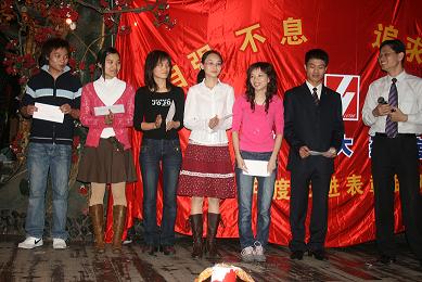 下午4:00整,在《好日子》歡快的歌舞中,表彰聯(lián)歡會正式拉開了序幕。會上共頒發(fā)了九個獎項(xiàng),分別是最佳員工獎6人,最佳藥師獎2人,最佳新人獎、最佳參與獎、最佳貢獻(xiàn)獎各1人,最佳店長獎3人,最佳門店獎2個,還有兩個特殊的獎項(xiàng):一是半年度毛利考核指標(biāo)完成相對值、絕對值各前3名的門店,二是2000年8月前入職的老員工獎。頒獎過程中還穿插了員工們自編、自導(dǎo)、自演的小節(jié)目。他們用優(yōu)美的舞姿、甜美的歌聲、俏皮搞笑的小品為杰出的先進(jìn)代表們喝彩、祝福,現(xiàn)場氣氛非?;钴S,高潮迭起,一張張如花的笑靨遨游在一片歡樂的海洋……最后,在《感恩的心》的優(yōu)美的旋律和熱烈的掌聲中,活動暫告一個段落。