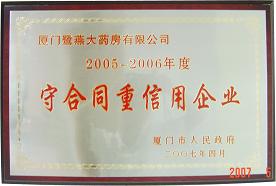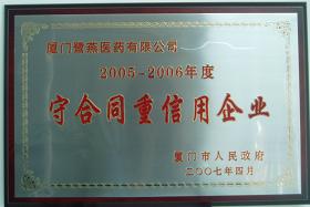 經(jīng)過層層選拔、評(píng)審,廈門鷺燕醫(yī)藥有限公司和廈門鷺燕大藥房有限公司雙雙榮獲了“2005-2006年度守合同重信用企業(yè)”稱號(hào),這是政府權(quán)威部門對(duì)我集團(tuán)合同管理工作的充分肯定。