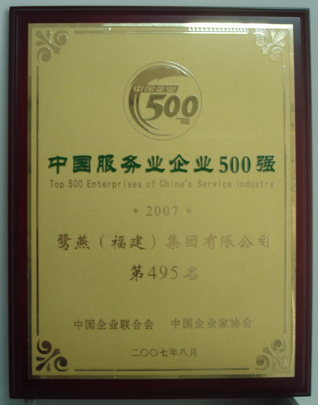 鷺燕集團(tuán)近日捷報(bào)頻傳,在剛剛榮獲了“2007廈門企業(yè)100強(qiáng)”之后,再次躋身于“中國(guó)服務(wù)企業(yè)500強(qiáng)”之列。我集團(tuán)已連續(xù)兩年獲此殊榮。